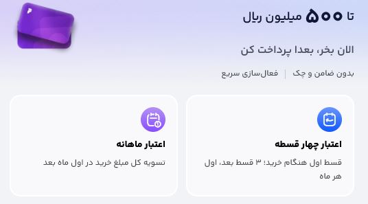 🔔 مبلغ اعتبار برای هر شخص متفاوت است و بر اساس سوابق مالی تعیین می‌شود.
