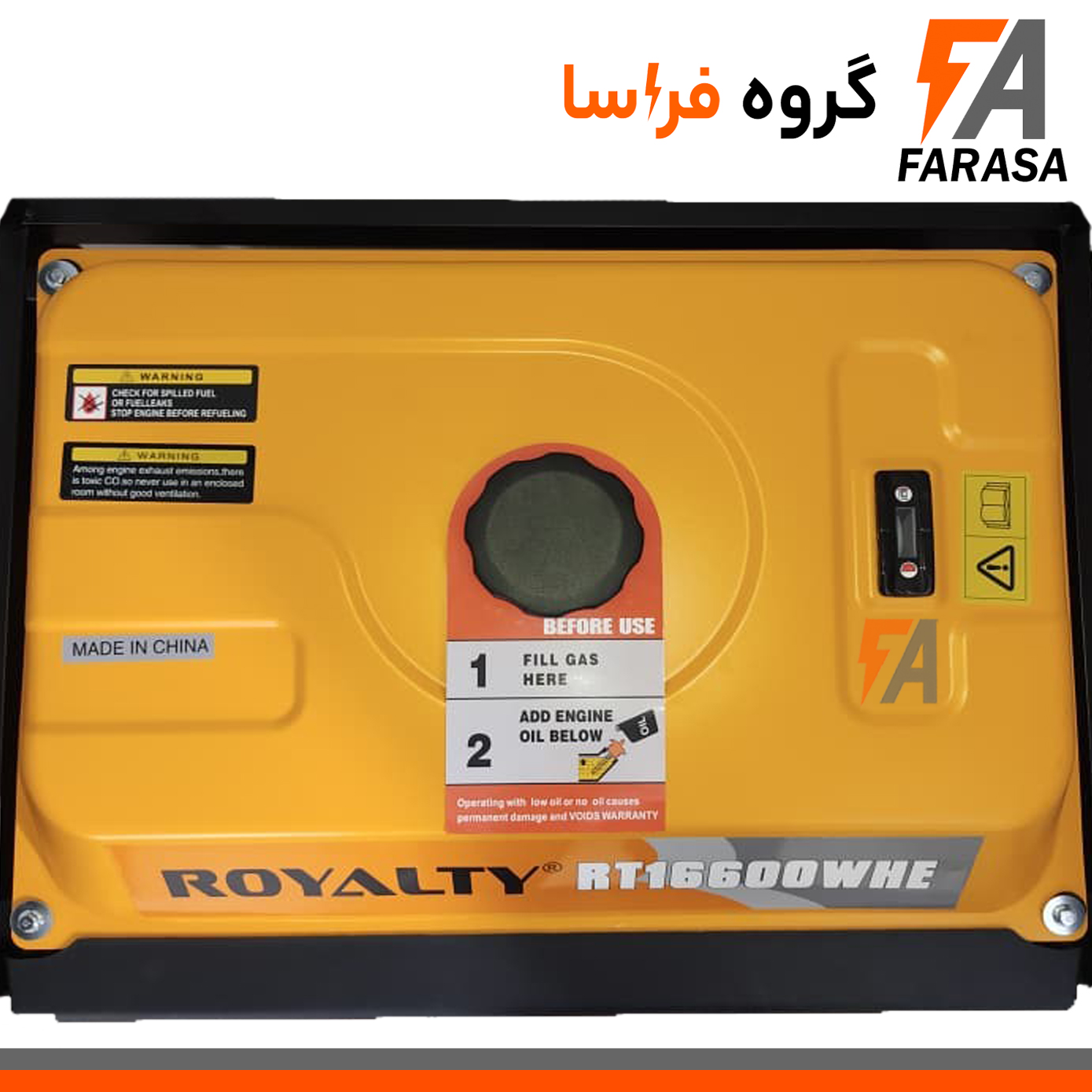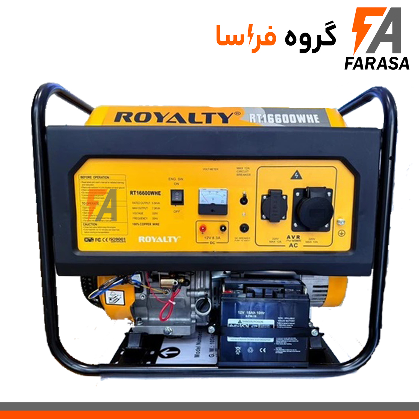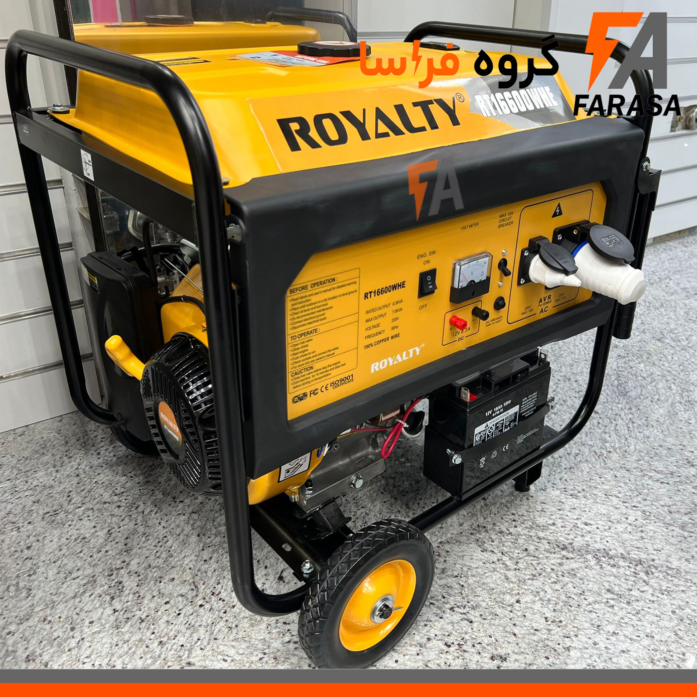رویالتی Royalty یکی از برندهای معتبر تولید کننده موتورهای صنعتی و ژنراتورهای برق به شمار می رود که به دلیل کیفیت ساخت خوب و استفاده از تکنولوژی ژاپنی و سیم پیچ تمام مس ،سالهاست که بین مشتریان محبوبیت یافته و جزو پر فروش ترین موتور برق های بازار آسیا و ایران می باشد .موتور برق 7 کاوا 7kva رویالتی Royalty مدل RT16600WHE، توانایی تامین برق پایدار برای کاربردهای متنوع را دارد. ایدهآل برای مصارف نیمه صنعتی و خانگی، با عملکرد بینظیر و دوام طولانی، بهترین انتخاب شما برای تجربهی برقی مطمئن و بیوقفه است.ویژگیهای موتور برق رویالتی: سیمپیچ 100% مسی:این ویژگی به افزایش کارایی و طول عمر دستگاه کمک میکند -سیستم AVR (تنظیمکننده ولتاژ):این سیستم ولتاژ خروجی را تثبیت کرده و از دستگاههای حساس متصل به آن در برابر نوسانات برق محافظت میکند-استارت برقی و هندلی:برای راحتی کاربری و امکان راهاندازی موتور برق در موقعیتهای مختلف- بدنه مقاوم:طراحی شده برای تحمل شرایط سخت محیطی