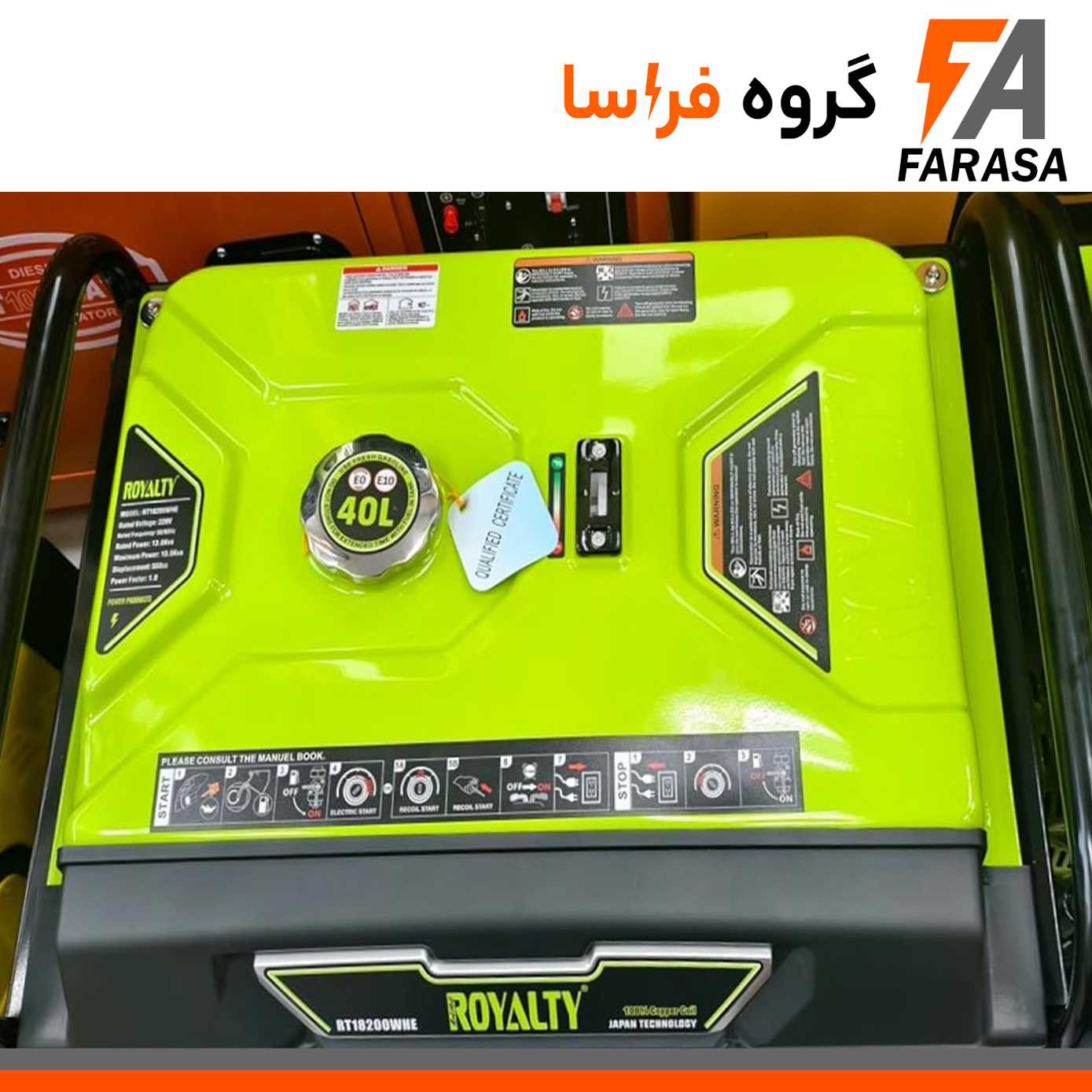 رویالتی Royalty یکی از برندهای معتبر تولید کننده موتورهای صنعتی و ژنراتورهای برق به شمار می رود که به دلیل کیفیت ساخت خوب(دارنده گواهینامه ISO9001 مدیریت کیفیت و نشان CE اروپا) و استفاده از تکنولوژی ژاپنی و سیم پیچ تمام مس ،سالهاست که بین مشتریان محبوبیت یافته و جزو پر فروش ترین موتور برق های بازار جهانی مخصوصا آسیا و ایران می باشد .موتور برق 13.5 کاوا 13.5kva رویالتی Royalty مدل RT18200WHE، توانایی تامین برق پایدار برای کاربردهای متنوع را دارد. ایدهآل برای کارگاه ها،فروشگاه و مغازه ،منازل و .... با عملکرد بینظیر و دوام طولانی، بهترین انتخاب شما برای تجربهی برقی مطمئن و بیوقفه است.ویژگیهای موتور برق رویالتی: سیمپیچ 100% مسی:این ویژگی به افزایش کارایی و طول عمر دستگاه کمک میکند -سیستم AVR (تنظیمکننده ولتاژ):این سیستم ولتاژ خروجی را تثبیت کرده و از دستگاههای حساس متصل به آن در برابر نوسانات برق محافظت میکند-استارت برقی و هندلی:برای راحتی کاربری و امکان راهاندازی موتور برق در موقعیتهای مختلف- بدنه مقاوم:طراحی شده برای تحمل شرایط سخت محیطی-صفحه نمایش دیجیتال
